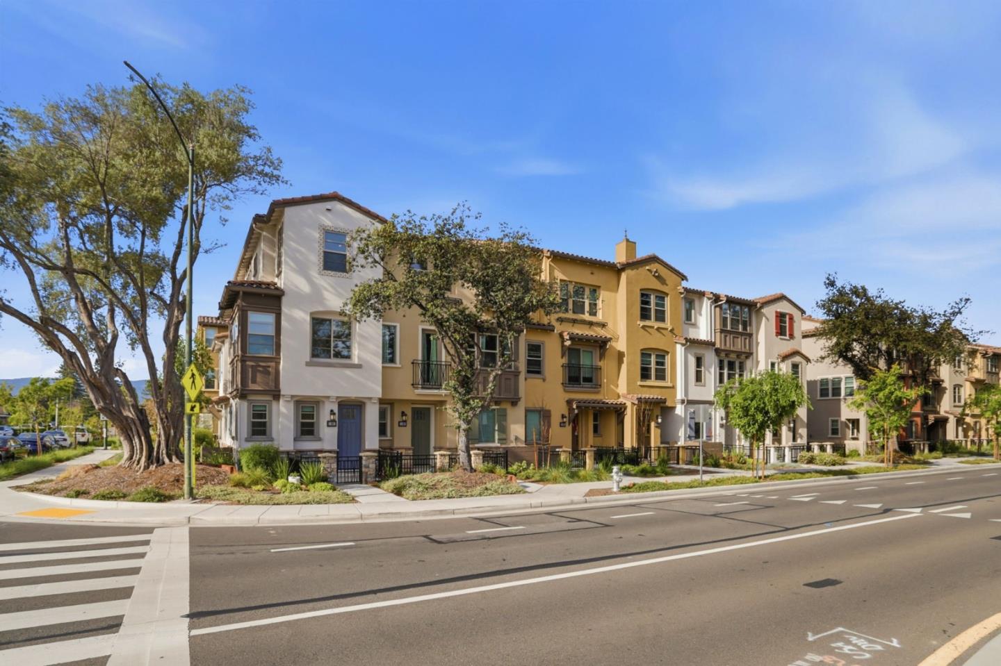 Presenting a contemporary end-unit townhouse featuring three bedrooms and three bathrooms with 1821sqft, constructed by SummerHill Homes in 2024. The entry level features a large den suitable for a gym, office, or living space. The second floor offers a spacious open-concept design that seamlessly links the living room, dining area, and kitchen, which includes a large island, ample counter space, and an upgraded backsplash. There's also a guest room with a full bathroom on this level. Upstairs, the primary suite has a walk-in closet and a bathroom with dual vanities, while a second bedroom features its own ensuite full bath. This home features fully owned solar panels and a 220V EV charging outlet in a two-car, side-by-side garage. It also comes with a washer and dryer, refrigerator, EV cable, and TV wall mountall included. Desirable Verano community featuring a central park for BBQs and gatherings. Centrally located in Mountain View near top employers like Google, LinkedIn, Microsoft, and NASA. Close to downtown restaurants, farmers market, VTA/Caltrain, and highways 101, 280, and 85. Must see!